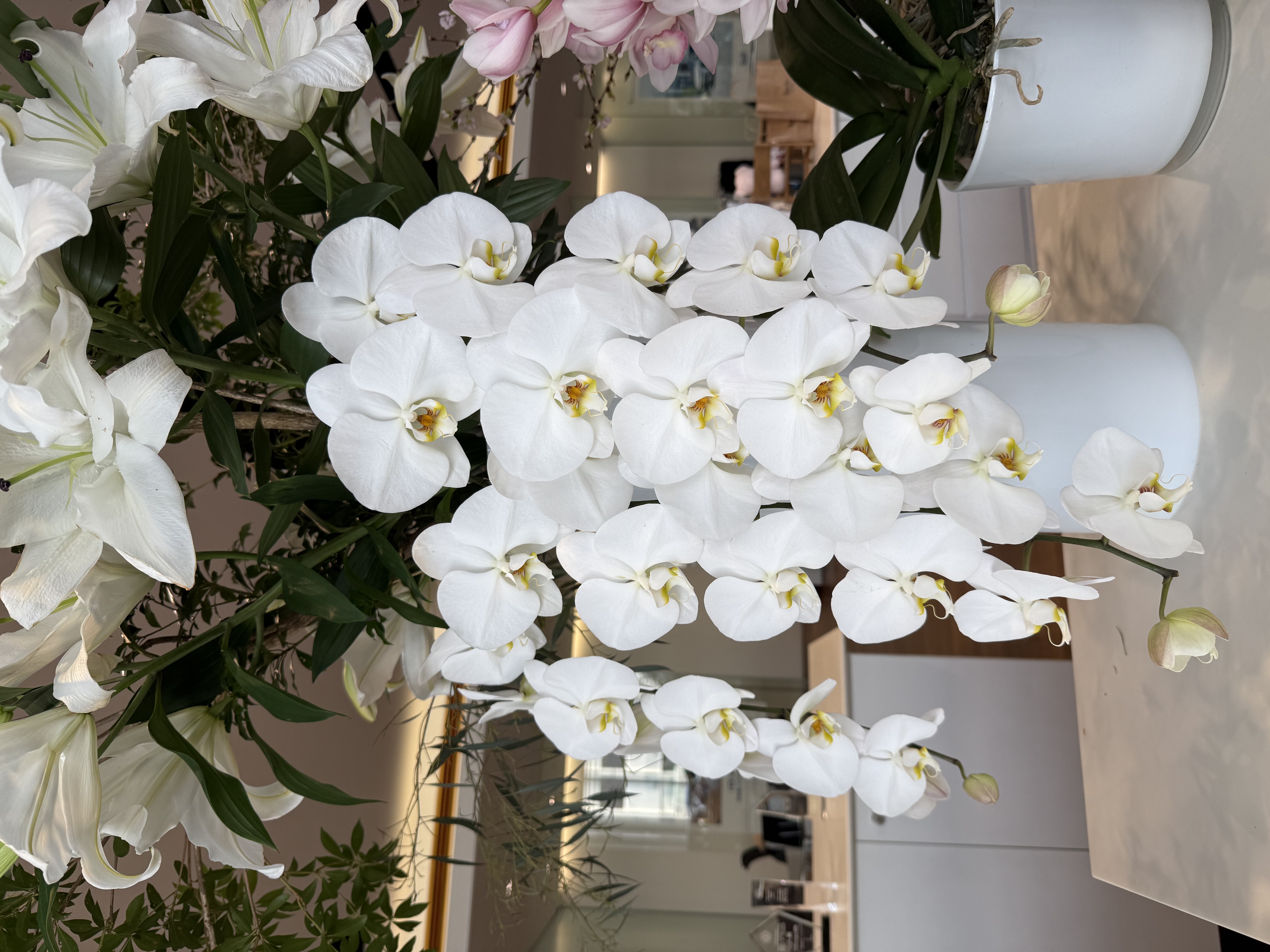 先週までの装花に「胡蝶蘭」と「桜」と「アセビ」が加わりました🌼✨✨
